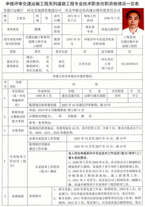 京張公司2017年度專業(yè)技術(shù)職稱申報(bào)公示(王喜會(huì))